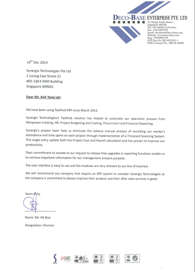 เราขอแนะนำบริษัทใดก็ตามที่ต้องการระบบ ERP ให้พิจารณา Synergix Technologies เนื่องจากบริษัทมีความมุ่งมั่นที่จะพัฒนาผลิตภัณฑ์ของตนเองอยู่เสมอ และมีการบริการหลังการขายที่ดี